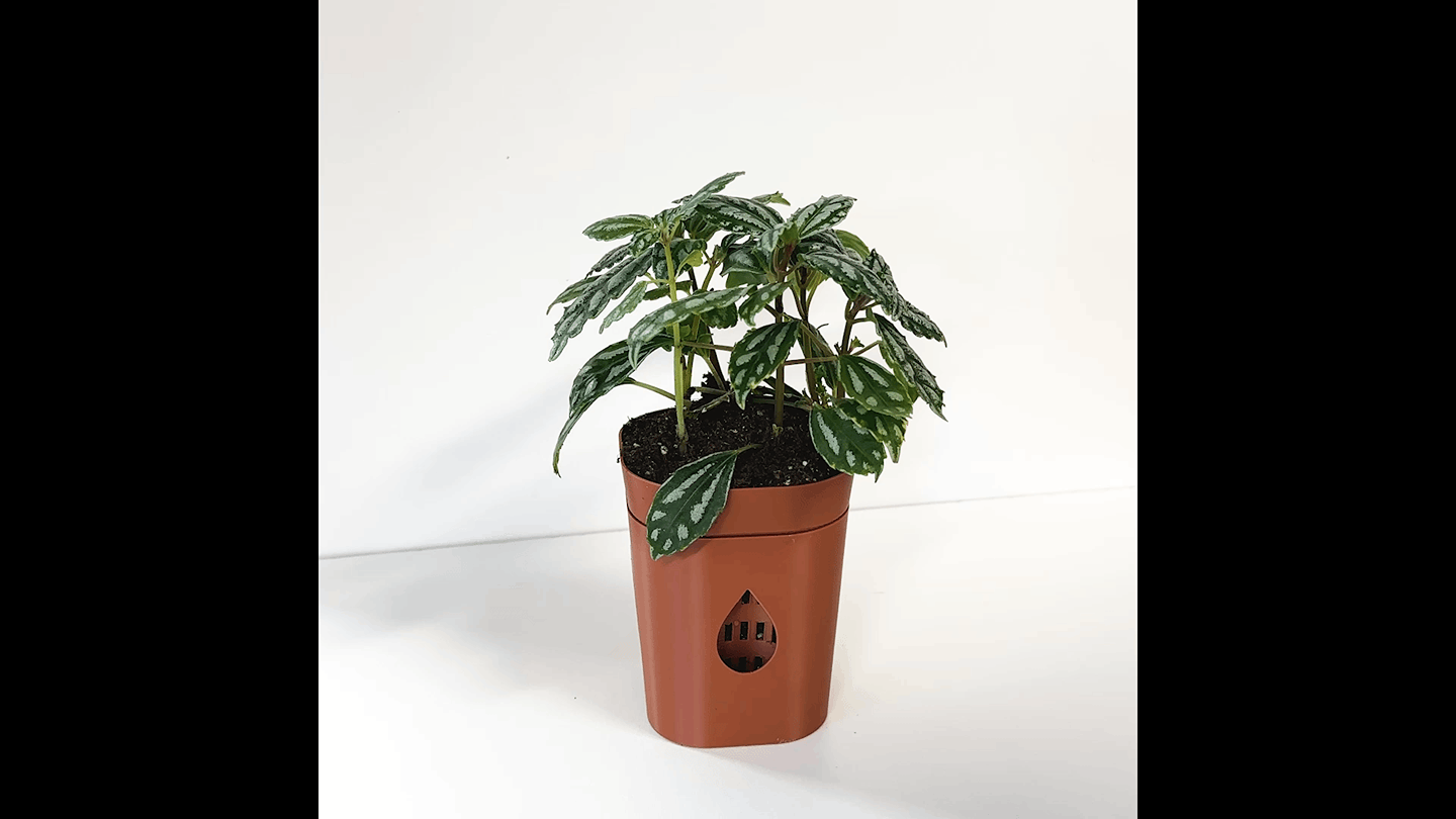 AIRO planters use a two-piece design with an outer vessel that holds water and an inner, perforated vessel that allows airflow and slow, even watering. This system promotes balanced moisture while improving air circulation for healthier plant growth.