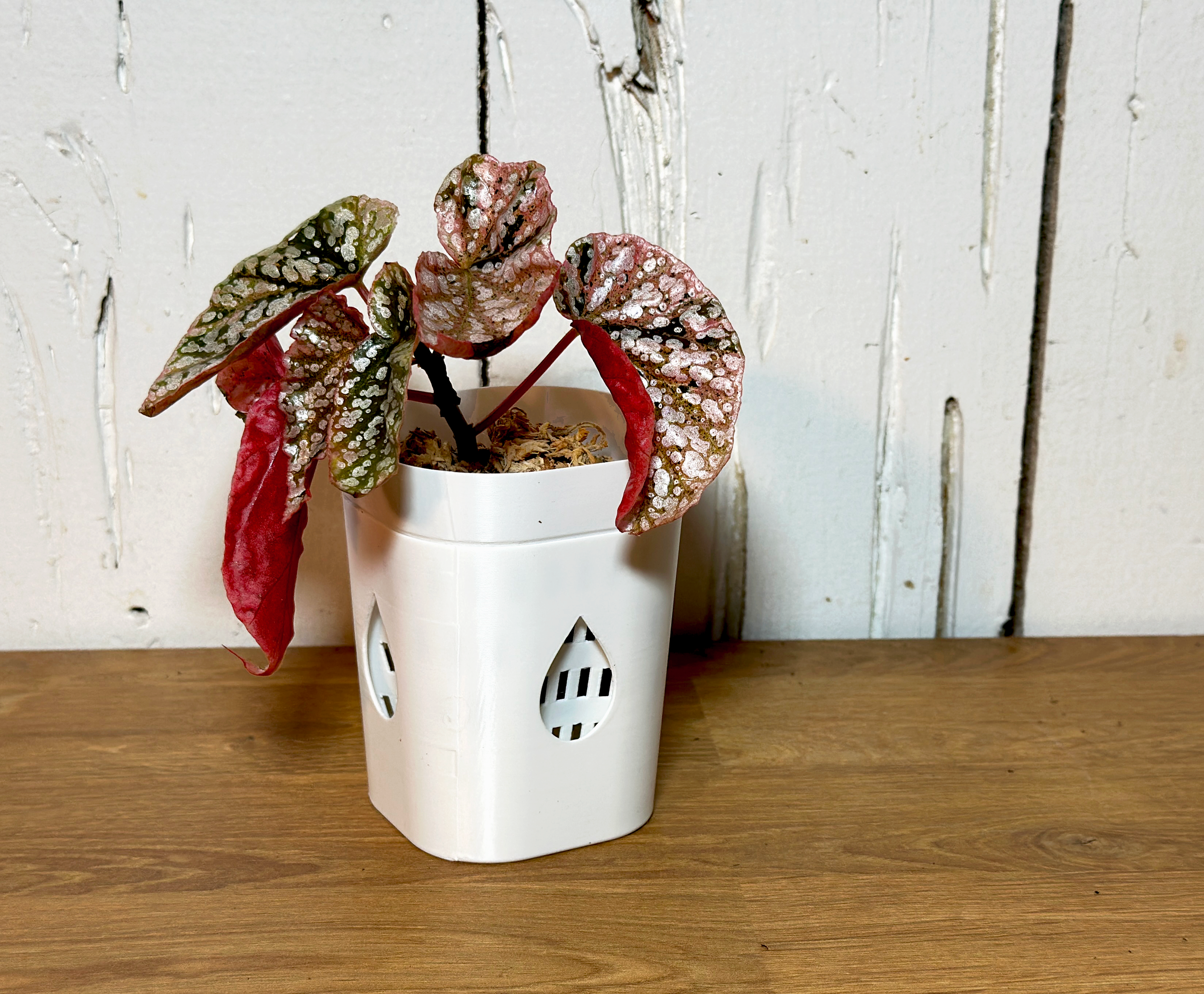 Each planter is 3D printed using plant-based PLA, a material derived from renewable resources like corn or sugarcane rather than petroleum.